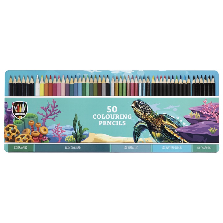 Matite colorate in scatola di latta 50 pz.