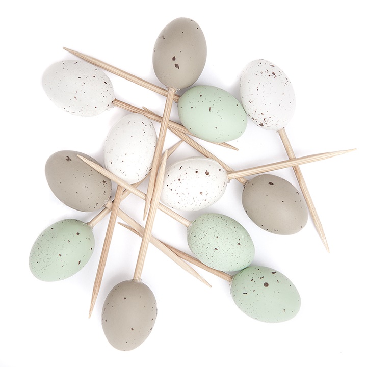 Mini uova con bastoncini nei dolci colori dell'arcobaleno. La lavorazione di qualità e la vernice opaca garantiscono il loro aspetto naturale. Il bastoncino di legno lo rende facile da attaccare, ad esempio, a ghirlande di vimini o base in polistirolo. Le bellissime uova di Pasqua andranno ad arricchire le decorazioni primaverili, come ghirlande, addobbi o confezioni con i dolci regali del coniglietto pasquale. Nella confezione troverai 12 uova con dimensioni 2,5 x 2 cm. Disponibile in diversi colori.